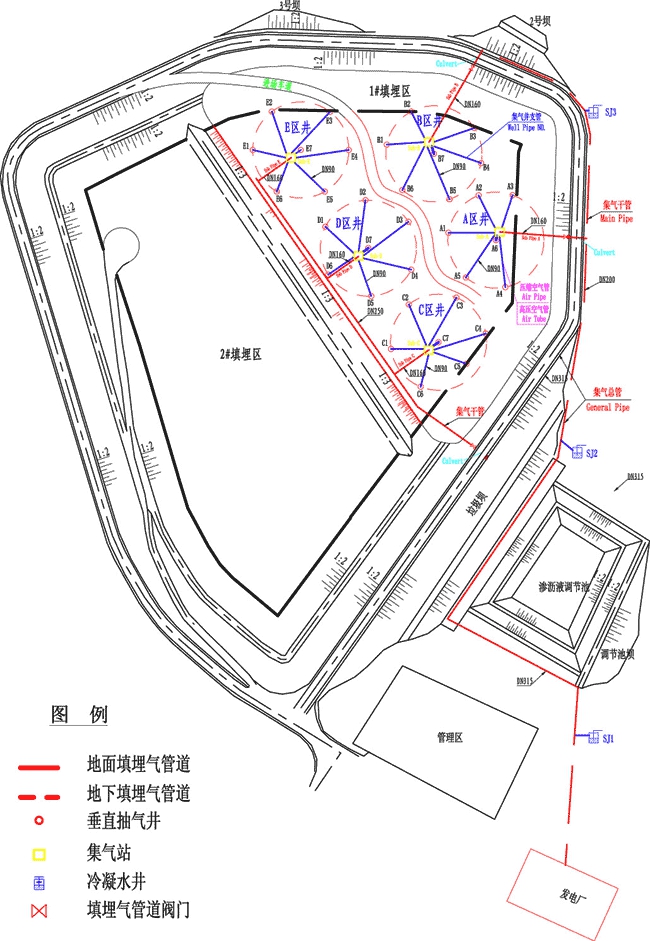 本工程中心擁有垂直豎井、水平橫井、橫豎井結(jié)合等多種技術(shù)方案,可以根據(jù)垃圾填埋場(chǎng)實(shí)際狀況,提出符合實(shí)際情況的氣體收集方案,并實(shí)施包括打井、管道鋪設(shè)與連接在內(nèi)的工程建設(shè)工作。為了確保提高對(duì)填埋場(chǎng)內(nèi)部的氣體收集率,本中心還擁有“氣動(dòng)排水”、“井內(nèi)水位測(cè)量”、“垃圾堆體內(nèi)部參數(shù)測(cè)量”等專有技術(shù),以保證氣體收集系統(tǒng)的高效運(yùn)行。
