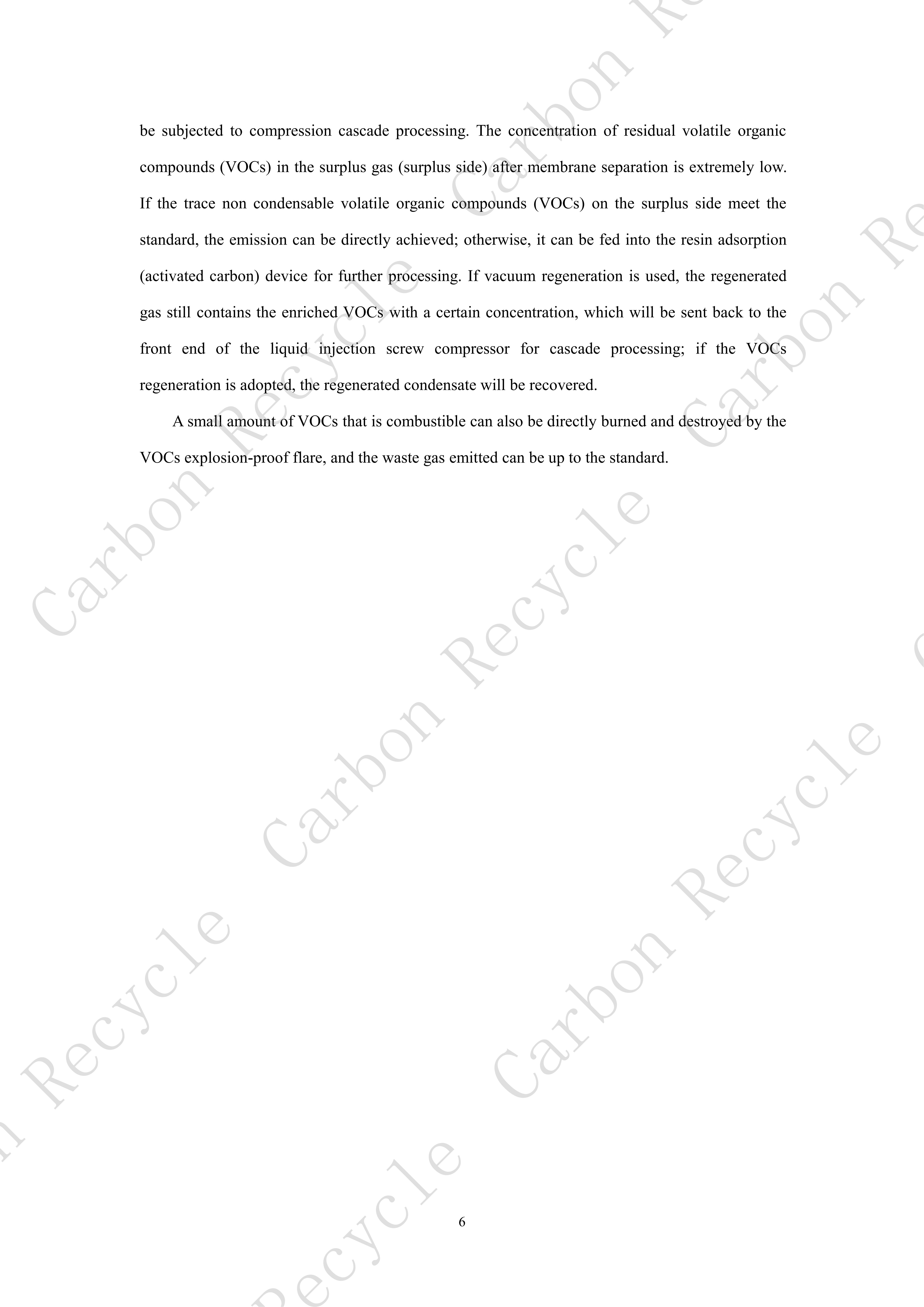 I. Multi-processes recovery treatment of compression & condensation+ membrane separation & concentration + resin adsorption/VOCs explosion-proof flare