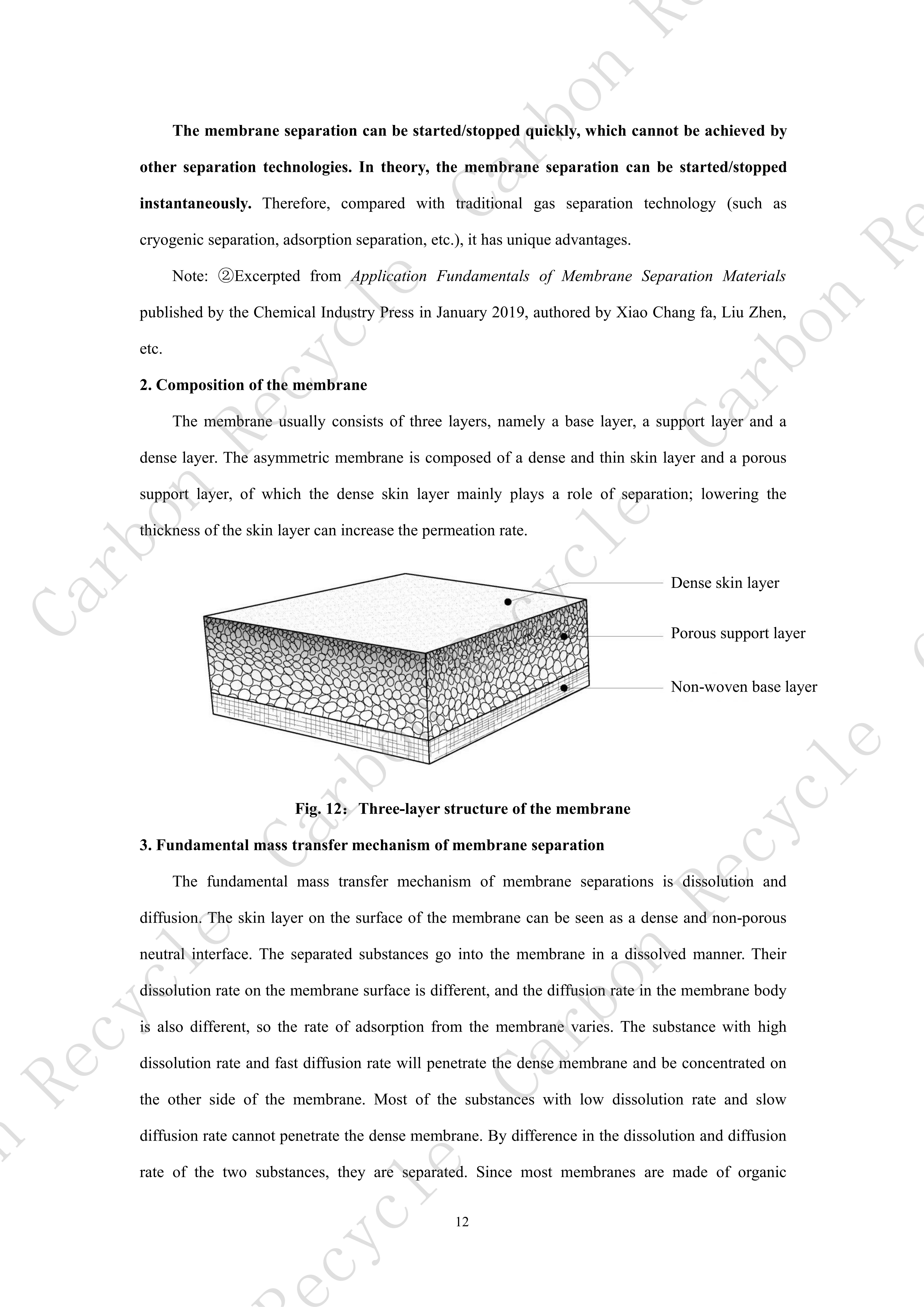 The "membrane" is a general term for a thin layered substance for isolation, of which the thickness can range from a few microns to a few millimeters. The "membrane" here refers specifically to materials with selective separation function, also known as separation membrane, through which one or several substances in the fluid can permeate while the other one or several substances cannot, thereby playing the role of separation, purification and concentration. The membrane is also defined as "a three-dimensional structure" internationally. "The size of one dimension in three dimensions is much smaller than the other two, and mass transfer can be realized due to various driving forces.”