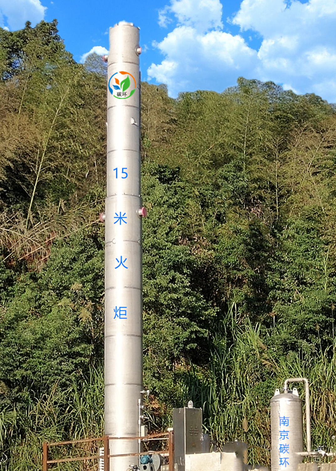 封閉式沼氣火炬是惡臭氣體燃燒法摧毀和排放的主要工藝手段。符合《惡臭污染物排放標準》的火炬高度應該不低于15米。